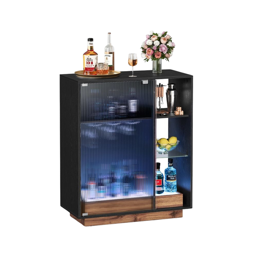 Het geribbelde glas, de flexibele opbergruimte en de warme LED-verlichting maken deze drankkast tot een echte blikvanger.