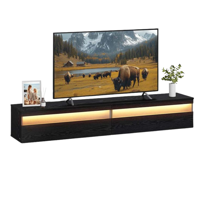 Dankzij het strakke ontwerp, de ruime opbergladen en de subtiel geïntegreerde LED-verlichting brengt dit TV-meubel direct extra sfeer in je interieur. De warme lichtlijn benadrukt de houtstructuur en zorgt voor een moderne, luxe uitstraling die zowel overdag als ’s avonds tot zijn recht komt.