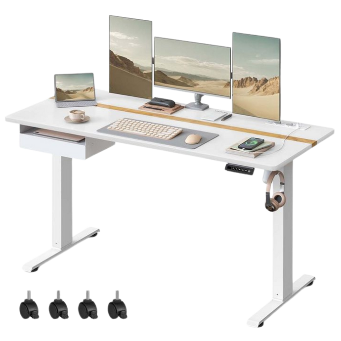 Dit elektrisch zit-sta bureau helpt je slimmer en gezonder te werken, of je nu studeert, thuiswerkt of op kantoor zit. Het ruime werkblad en de slimme opbergmogelijkheden zorgen voor overzicht en focus, terwijl de zit-sta-herinnering je subtiel aanmoedigt om van houding te wisselen en te lang zitten te voorkomen. Zo blijf je comfortabel, geconcentreerd en productief gedurende de dag.
